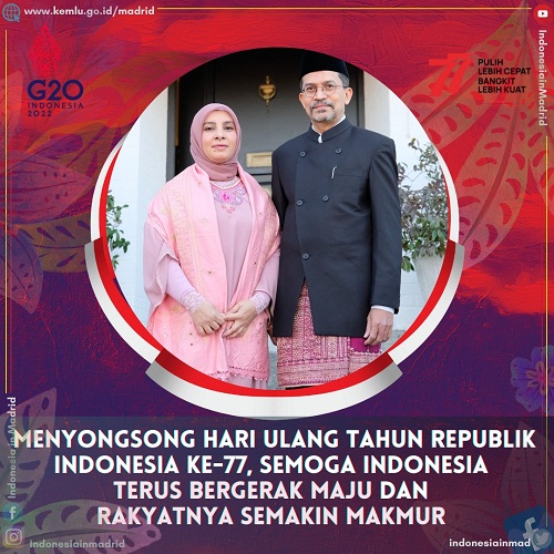 “Kami tentu semua berdoa berharap semua lancar sesuai dengan rencana. Upacara seperti ini penting bagi kami di KBRI Madrid. Hari pada tanggal 17 AGustus merupakan hari yang sakral bagi kita bansga Indonesia. Hari yang sangat menentukan perkembangan bangsa saat ini dan kedepan. Hari yang diperjuangkan dengan keringat, darah, dan nyawa,” ungkap Dubes Muhammad Najib melalui channel Youtube Wisma Duta RI Madrid.