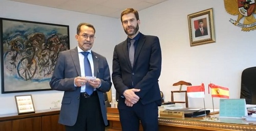 ZONASATUNEWS.COM, MADRID – Dubes RI Untuk Kerajaan Spanyol dan UNWTO, Dr Muhammad Najib, menerima tamu yang bernama Muhammad Escudero Uribe, Direktur General Halal Institue of Junta Islamika sertifikasi halal di sebuah perusahaan yang bernama hunta Islamica yang berkantor di Cordoba.
