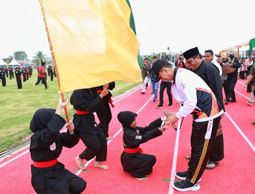 Event olahraga tersebut dibuka PJ Gubernur Aceh, Achmad Marzuki ditandai dengan penabuhan rapai yang didampingi Wakil 1 Ketum Koni Pusat, Ketum Koni Aceh Muzakkir Manaf, dan Pj Bupati Pidie, Wahyudi Adisiwanto.