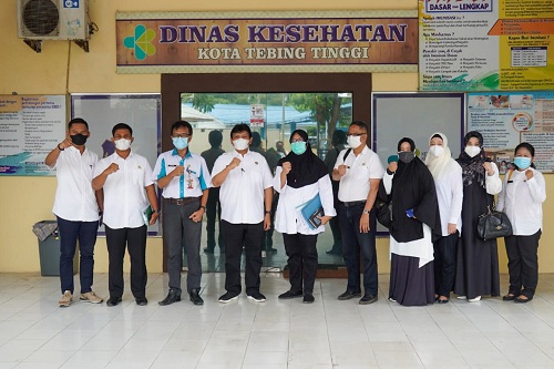 Pendamping satgas covid-19. Sumut ini diterima oleh Sekretaris Dinas Kesehatan Drs. Azhar dan Kabid P2P dr. Henny Sri Hartati di Kantor Dinas Kesehatan Kota Tebing Tinggi, dilanjutkan dengan rapat pembahasan penanganan Covid-19 Kota Tebing Tinggi.