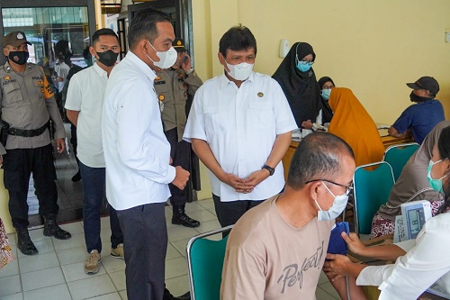 Selesai rapat, Dr. Ir. Binsar Situmorang M.Si, M.AP bersama dengan dr. Henny Sri Hartati dan Kabid Komunikasi Dinas Kominfo Tebing Tinggi Iswan Suhendi, S.STP, M.Si melakukan pengecekan pelaksanaan vaksinasi yang sedang dilaksanakan di Kecamatan Tebing Tinggi.