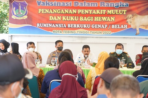 ZONASATUNEWS.COM, TEBINGTINGGI-SUMUT – Dalam rangka penanganan PMK (Penyakit Mulut dan Kuku) dan LSD (Lumpy Skin Disease/ penyakit pada hewan yang disebabkan virus pox), Pemerintah Kota (Pemko) Tebing Tinggi melalui Dinas Ketahanan Pangan (Ketapang) dan Pertanian melakukan percepatan vaksinasi bagi hewan ruminansia (hewan pemamah biak/ ternak) berkuku genap/ belah, Kamis (14/7/2022), di halaman Kelurahan Karya Jaya, Kecamatan Rambutan.
