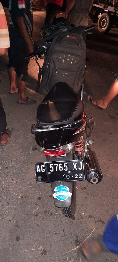 Saat belok ke kanan tidak memperhatikan situasi, dari arah bersamaan berpapasan sepeda motor jenis Honda Supra bernopol AG 5765 XJ, yang dikendarai Ikwanin (45), warga dusun Tengger Desa Blongko Kecamatan Ngetos, Nganjuk.