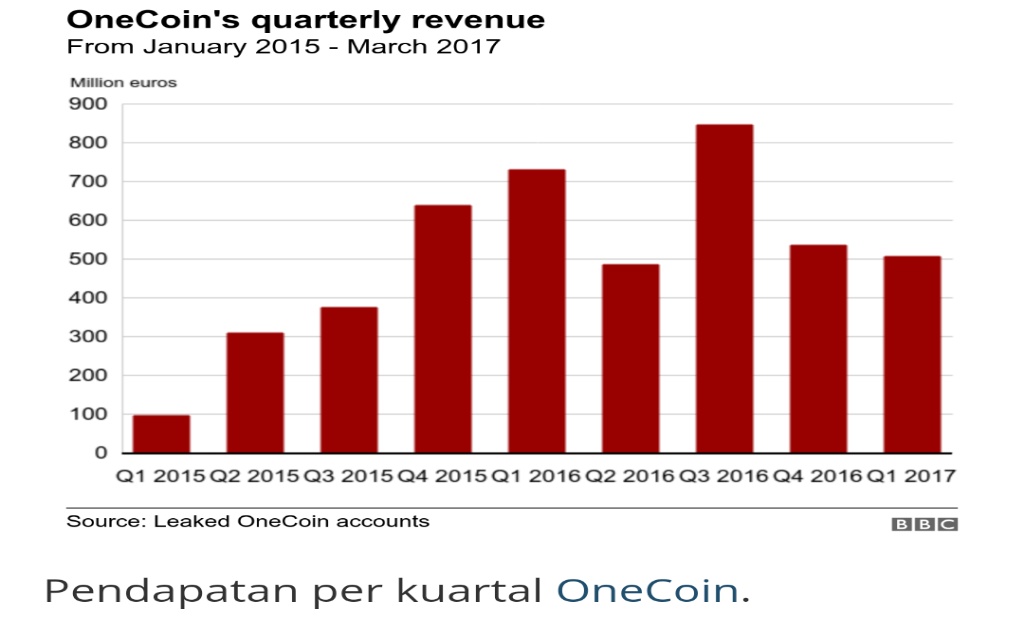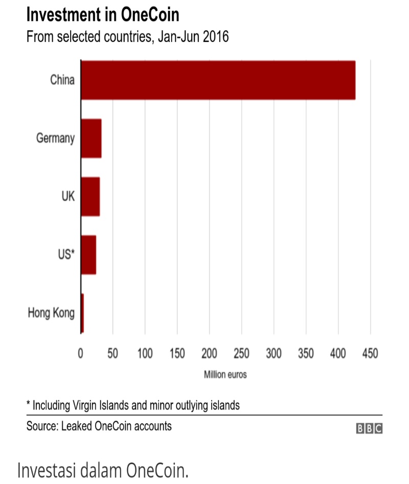 Graphic showing investment in OneCoin over time. Investasi dalam OneCoin.
