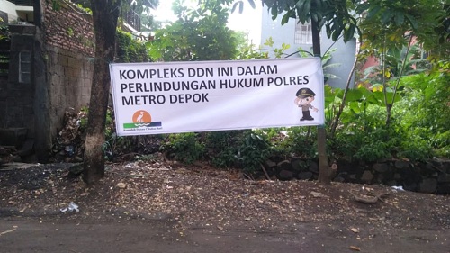 ZONASATUNEWS.COM, DEPOK–Dalam beberapa tahun terakhir, terdapat sekelompok oknum yang menduduki beberapa kavling (baik yang berupa lahan kosong maupun sudah ada bangunan semi permanen). Oknum tersebut kemudian memasang plang kepemilikan tanah tersebut. Lokasi penyerobotan lahan ini berada di kavling Departemen Dalam Negeri (DDN) – Danau Cibubur Asri – kelurahan Harjamukti – Cimanggis Depok.