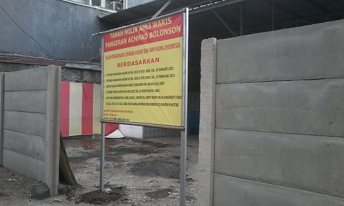 Pihak penyerobot menunjuk lembaga hukum PADMA dan mengaku sebagai Ahli Waris Pangeran Ahmad Bolonson, berdasarkan Eigendom Verbonding 5658.