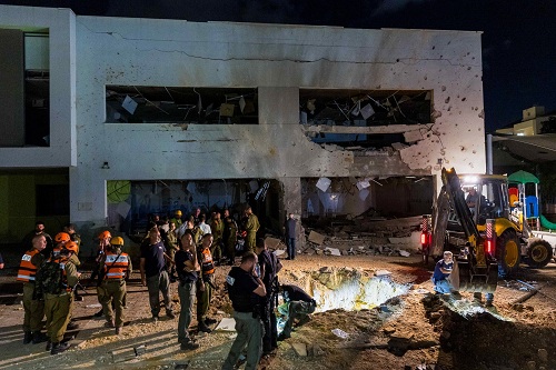 Foto AP menggambarkan pasukan pemadam kebakaran dan tentara Israel di lokasi langsung setelah rudal menerjang Tel Aviv. Tampak puing berserakan dan gedung rusak saat mereka mengevakuasi korban dan menilai kerusakan