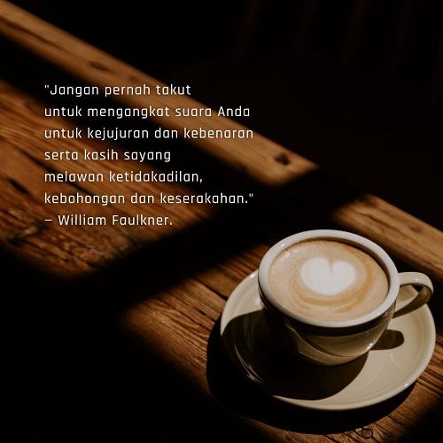 “Jangan pernah takut untuk mengangkat suara Anda untuk kejujuran dan kebenaran serta kasih sayang melawan ketidakadilan, kebohongan, dan keserakahan.” — William Faulkner.