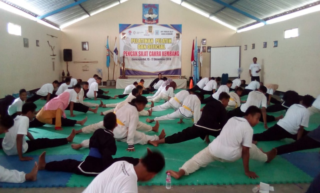Yogyakarta, ZonasatuNews— Perguruan Pencak Silat Cakra Kembang Gunungkidul bekerja Sama dengan Kementerian Pemuda dan  Olahraga, Asdep Peningkatan Prestasi Olahraga menggelar Pelatihan Pelatih dan Ofdicial selama 3 hari di Gedung serbaguna Merpati Putih, Padukuhan Nglebak Desa Katongan Kecamatan Nglipar, pada hari Sabtu 15 Desember hingga Senen 17 Desember 2018.