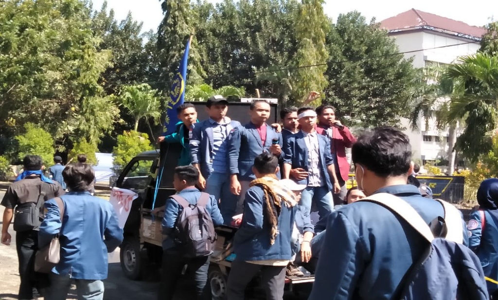 Aksi gabungan BEM NTB raya yang terdiri dari BEM Unram, BEM IKIP Mataram, dan BEM UNW, menuntut :