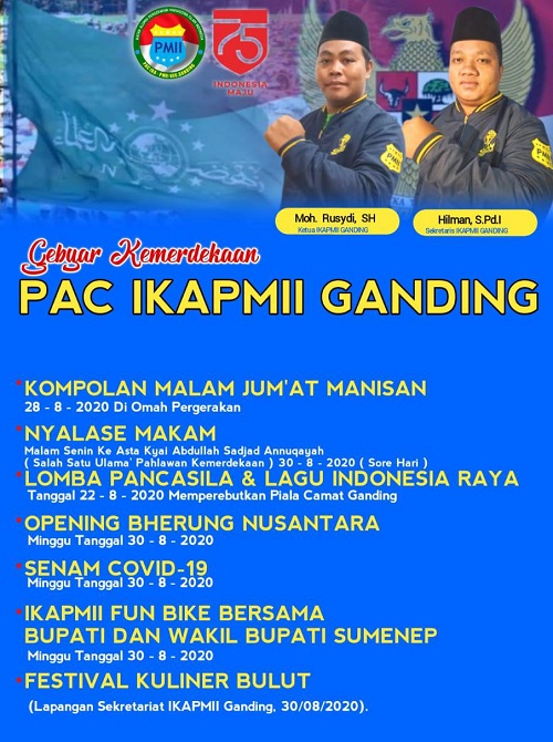 Ketua PAC IKAPMII Ganding, Moh Rusydi menyampaikan, kegiatan gebyar Kemerdekan RI Ke-75 tahun ini dikemas dengan berbagai macam rentetan acara.