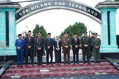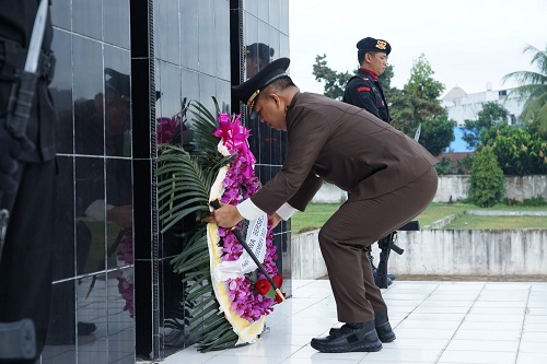 Titik lokasi di Taman Makam Bahagia dan Jembatan Titi Gantung, Kajari Muhammad Muchsin, S.H., M.H.  selaku Inspektur Upacara, memimpin rangkaian upacara yang berlangsung khidmat, mulai dari penghormatan kepada arwah para pahlawan, mengheningkan cipta, peletakan karangan bunga dan penaburan bunga.