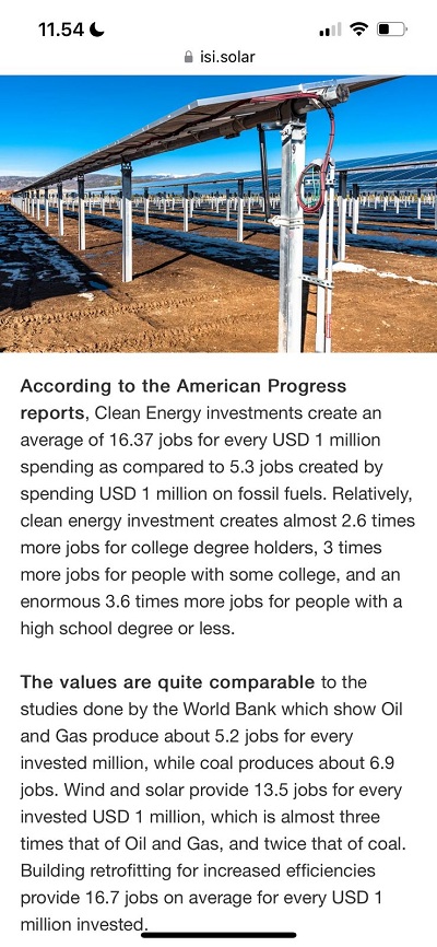 Menurut benchmark internasional, setiap investasi satu juta dolar AS akan menciptakan lapangan kerja rata-rata 19 orang. Untuk sektor energi solar panel akan menciptakan sekitar 16,37 lapangan kerja untuk setiap satu juta dolar AS investasi.
