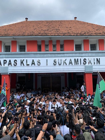 Panggungnya kuat: halaman penjara Sukamiskin, Bandung; tempat yang seabad lalu juga menjadi tempat penyekapan Bung Karno. Massa yang menyambutnya ingin mendengar pernyataan Anas setelah lebih dari delapan tahun mereka tak mendengar sepatah kata pun dari dia.