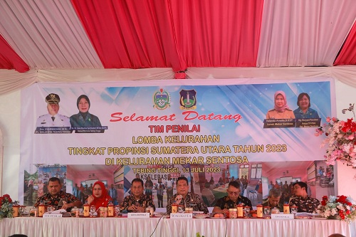 ZONASATUNEWS.COM, TEBINGTINGGI-SUMUT – Pj Walikota Tebingtinggi menerima tim penilai Lomba Desa/ Kelurahan terbaik Kabupaten/ Kota se-Sumatera Utara tahun 2023, Kamis (13/07/2023) di kantor Kelurahan Mekar Sentosa Jl. Gn. Selamat, Kec. Rambutan, Penjabat Wali Kota Tebing Tinggi Drs. Syarmadani, M.Si. berharap melalui kegiatan ini dapat menjadi masukan sebagai perbaikan dalam memberikan pelayanan yang lebih baik.