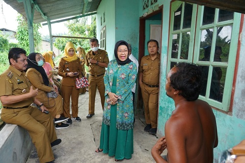 Dalam kunjungan tersebut, Pj Wali Kota Tebing Tinggi didampingi Ketua TP PKK Ny Harliaminda Dimiyathi, Kadis Kominfo Dedi Parulian Siagian, Kadis Sosial Khairil Anwar, Kadis Kesehatan Muhammad Iqbal, Camat Bajenis Dira Astama dan Lurah Durian Masri. mengunjungi rumah salah satu warga