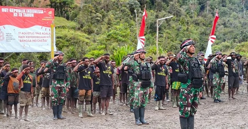Pos TNI Dal Di Pedalaman Pegunungan Tengah Papua Bersama Masyarakat Tunjukkan Jiwa Patriot Dan Cinta Tanah Air Dalam Upacara, Senin (4/9/2023)