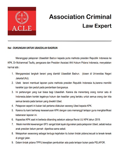 Selengkapnya surat dukungan ACLE kami lampirkan dibawah ini: