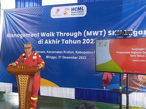 ZONASATUNEWS.COM, PASURUAN – Kontraktor Kontrak Kerja Sama Husky – CNOOC Madura Limited (HCML) mampu meraih capaian produksi gas yang memuaskan sepanjang tahun 2023 ini. Hal ini disampaikan pada kegiatan “Management Walkthrough (MWT) SKK Migas di Akhir Tahun 2023” oleh SKK Migas, Minggu – Senin (31/12/2023 – 1/1/2024) di Gas Metering Station (GMS) HCML, Pasuruan Jawa Timur.