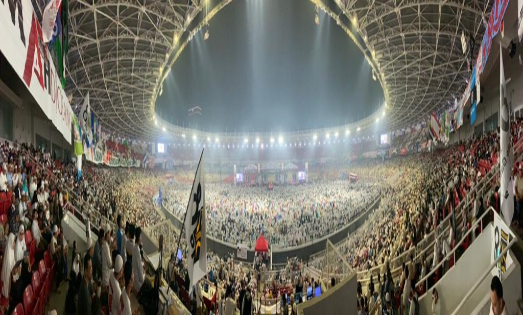 GBK sudah dipenuhi massa. Sementara diluar gedung massa terus berdatangan secara bergelombang.