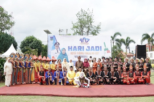 Ditandai dengan pelepasan balon ke udara, pemotongan kue ulang tahun dan tumpeng sebagai rasa syukur, serta penampilan pentas seni tari-tarian, drama, dan pemberian penghargaan dan penyerahan bantuan turut mewarnai semarak peringatan HUT Kota Tebing Tinggi ke 107 tahun di halaman Gedung Balai Kota.