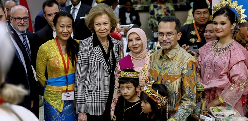 Ratu Sofía berada di stand Indonesia di Bazar Diplomático Solidario yang dibuka Sabtu ini di Madrid (Foto: lavanguardia.com)