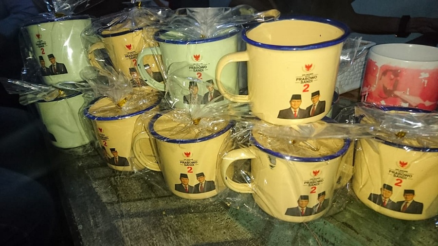 “Soevenir berupa mug dan stiker ini hanya dibagi saat nobar debat capres. Belum bisa melayani permintaan diluar itu. Persediaan terbatas. Syarat dan ketentuan berlaku,” kata Agus.