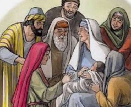Sesawi.net Lukisan tentang kelahiran Yahya bin Zakariya. Nabi Zakariyamenunggui hingga lahirnya Yahya.