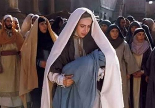 Portalaswaja.blogspot.com ….. foto dari film, Maryam dengan membisu membawa bayi ‘ Iysaa keHaekal Sulaiman, langkahnya terhenti dikepung bani Israel dan para imam Haekal Sulaiman.