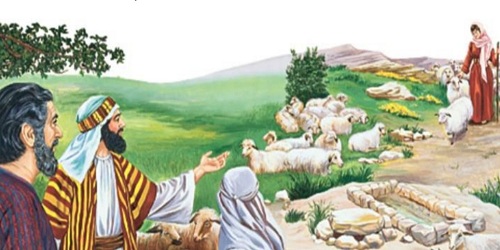 Stand to Jesus ….. Lukisan nabi Ya’cub ditunjukkan anak perempuan Laban yaitu Rahel yang sedang menggembalakan dombanya.