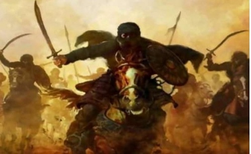Pwmu.co lukisan ilustrasi, pasukan berkuda kaum Qurays bergerak cepat memutari bukit untuk menyerang pasukan muslim dari belakang