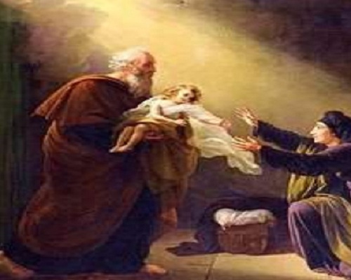 Id.m.wikipedia.org, Lukisan Louis Hersent, Nabi Ilyas menyerahkananak Janda yang hidup kembali melalui mukjizat do’a nabi Ilyas.