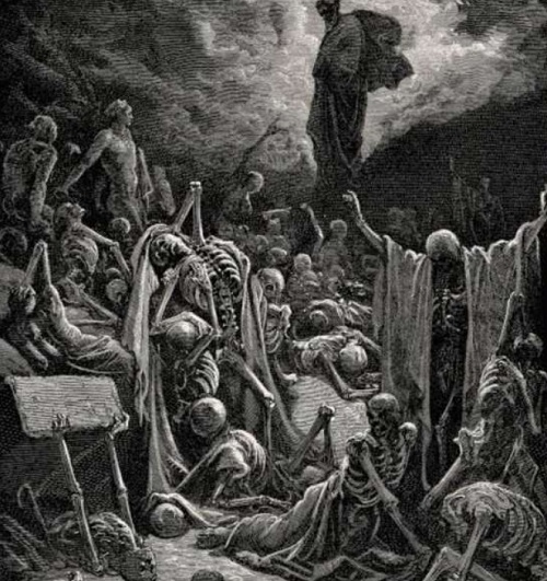 Id. m. Wikipedia.org. Lukisan Gustav Dore, tentang penglihatan nabi Yehezkiel atas tulang tulang keringbani Israel dan Yudea di lembah kemudian dihidupkan kembali untuk membangun Yerusalem yang sudahhancur luluh.