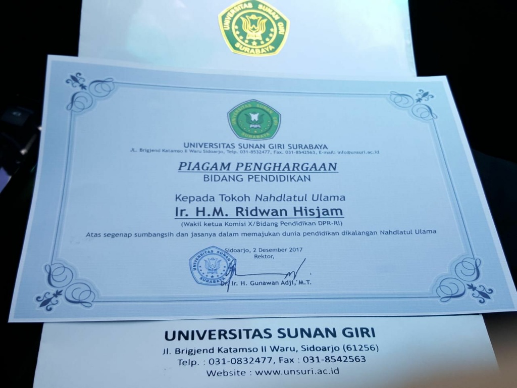 Selain Ridwan Hisjam, ada beberapa tokoh yang diberikan penghargaan, antara lain Halim Iskandar, Ketua DPRD Provinsi Jawa Timur, Prof. Dr. Ir. Soeprapto yang merupakan Ketua Kopertis Wilayah VII Jatim.