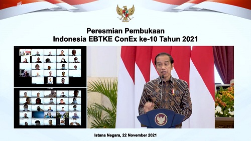 ZONASATUNEWSCOM, JAKARTA — Masyarakat Energi Terbarukan Indonesia (METI) mengadakan acara The 10th Indonesia Ebtke Conex 2021yang dibuka secara langsung oleh Presiden Republik Indonesia, Bapak Joko Widodo di istana negara. Tema utama pada tahun ini adalah Energy Transition Scenario Towards Net Zero Emission.