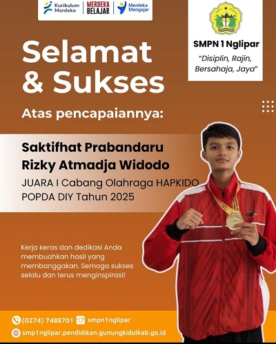Sementara, dari cabang beladiri Korea HAPKIDO Gunungkidul berhasil meraih 2 emas, 2 perak, 4 perunggu. Salah satu peraih medali emas under 48 kg adalah Saktifhat Prabandaru Rizky Atmadja Widodo, siswa SMPN 1 Nglipar-Gunungkidul.