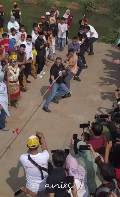 Seperti misalnya saat lomba tarik tambang, para warga cukup banyak yang mendukung Anies dengan meneriakkan yel-yel: “Pak Anies! Pak Anies!”