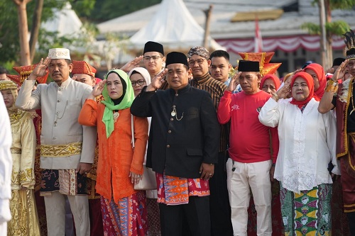 Anies Baswedan memakai baju lurik ikut upacara 17 Agustus 2023, didekat rumahnya, Lebakbulus Jakarta Selatan