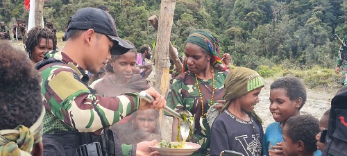 ZONASATUNEWS.COM, PAPUA – Melanjutkan pencegahan stunting, Satgas YPR 433/JS memborong sayur-sayuran dan memberikan pelatihan memasak yang sehat dan bergizi di Distrik Dal, Kabupaten Nduga
