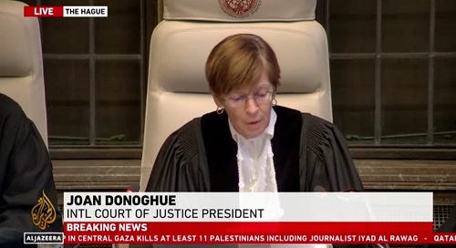 Joan Donoghue, International Court of Justice President, membacakan putusan mahkamh international atas tuduhan genoside Israel di Gaza