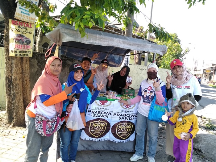 Relawan dan simpatisan Prabowo-Sandi itu sejak pukul 06.00 WIB sudah berkumpul di lokasi. Mereka berasal dari berbagai wilayah di Kabupaten Sidoarjo. Bahkan ada juga yang berasal dari Surabaya.