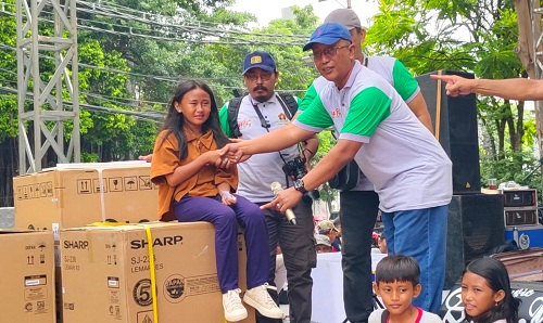 Suasana seketika berubah saat gadis kecil bernama Salwa langsung naik ke panggung ketika Sokip, penanggung jawab even pembuka rangkaian peringatan HPN 2025 dan HUT ke-79 PWI, mengumumkan kupon yang terpilih meraih lemari es itu.
