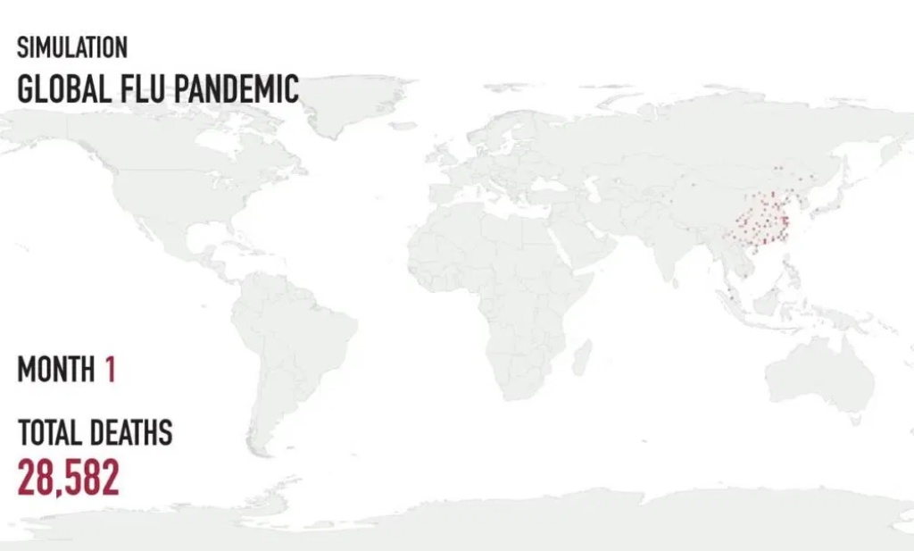 Video time lapse menjelaskan bagaimana wabah potensial di China kemudian dapat dengan cepat menyebar ke seluruh planet ini, yang akhirnya menewaskan 33 juta orang.