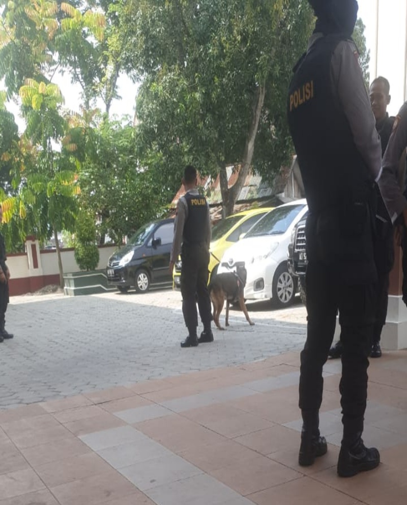 Pengamanan sidang dilengkapi polisi berompi anti peluru dan anjing pelacak