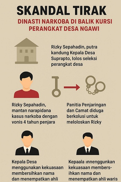 Jika anak seorang Kades dengan rekam jejak kriminal bisa dengan mudah lolos menjadi perangkat desa, maka pesan yang tersisa hanya satu: di Ngawi, kekuasaan bisa mencuci dosa.