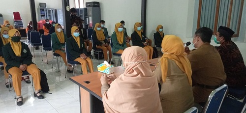 Tiga Belas Siswa SMK Farmasi Al-Islam mendengarkan pengarahan dari Dirut RSUD dr Soeroto Ngawi