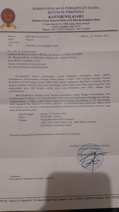 - KPPU Undang CERI Beberkan Dugaan Kartel Tender Pipa di Grup Pertamina Hulu Energi