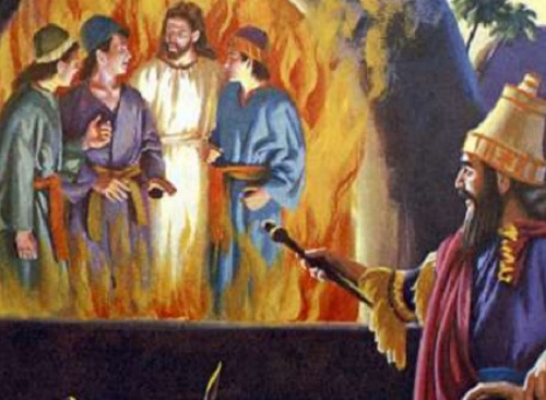 Kitab Danil 3 mengkisahkan, suatu saat terdengar khabar bahwa terdapat orang dari wilayah kaum yudea yang tidak mau menyembah patung dewa marduk. Orang tersebut adalah Sadrakh, Mesakh dan Abednego. Oleh pegawai istana kerajaan hal tersebut kemudian di laporkan kepada rajanya dan membuat Nebukadnezar II sangat marah dan disuruhnya pengawal istana untuk menyeret tiga orang tersebut ke hadapannya. Ketika telah dihadapkan kepada raja, diancamnya untuk dimasukkan ke api yang nyala dan panasnya akan diperbesar dari biasanya. Namun tiga orang ini bertahan dengan keyakinannya bahwa dengan mengatakan bahwa Allahnya mungkin akan menyelamatkannya dari api itu, dan meskipun tidak diselamatkan, mereka tetap tidak