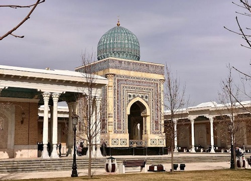 Dari kota lama Samarkand melalui jalan bebas hambatan hanya memerlukan waktu sekitar setengah jam untuk mencapai kompleks Makam Imam Buchari. Saat Kami tiba terdengar suara adzan dikumandangkan untuk memanggil orang untuk menunaikan shalat Asyar. Aku langsung mengambil air wudhu dan bersama Ibrahim menuju masjid yang berada di kompleks yang sangat luas. Kami lalu shalat berjama’ah di belakang Imam bersama beberapa orang pegawai setempat dan sejumlah wisatawan lokal. Hanya ada sekitar tujuh atau delapan orang yang ikut shalat berjamaah.
