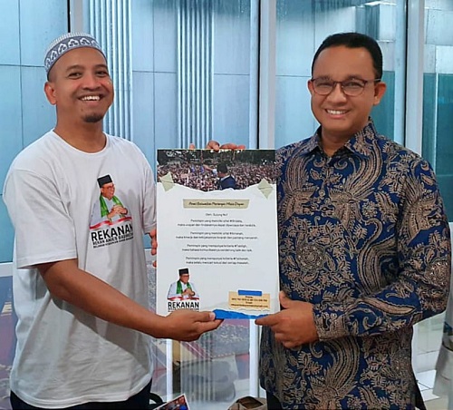 Ketika serah-terima puisi “Anies Baswedan Pemimpin Masa Depan”, beliau menerimanya dengan penuh hormat dan senyum. “Terima kasih,” diulangi lagi responnya sebagai wujud apresiasi kepada rakyat biasa.